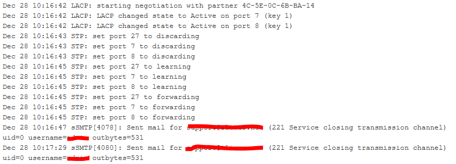Jan 14 20:20:11 STP: set port 11 to forwarding