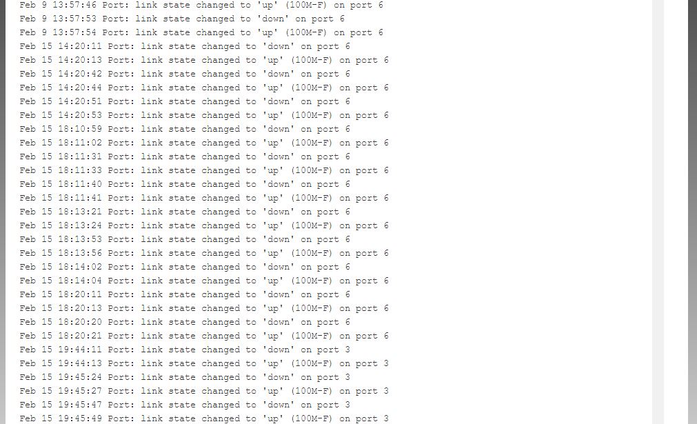 Feb 15 18:11:11 Port: link state changed to 'up' (100M-F) on port 6