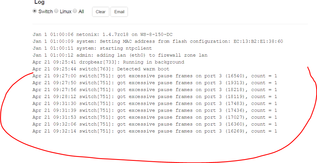 Un des appareils gère mal le protocole flow control et envoi des "pause frame" de manière excessive. Le protocole flow-control devrait être désactivé dans la majorité des cas incluant avec des caméras.