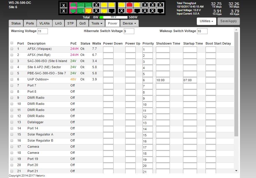 I agree that it would be better at 24v how ever there is equipment on this site that requires 12v. Yes I could step up the voltage but your switch can handle 9-72v I shouldn't need to run extra voltage equipment. As I keep saying the 12 port switch was perfectly fine. I have management of 50+ netonix switches on both 12v and 24v systems yet this is the only switch I am having problems with. I believe it all points to this particular switch. Now I do not know if it is hardware or software issue hence I am posting here.