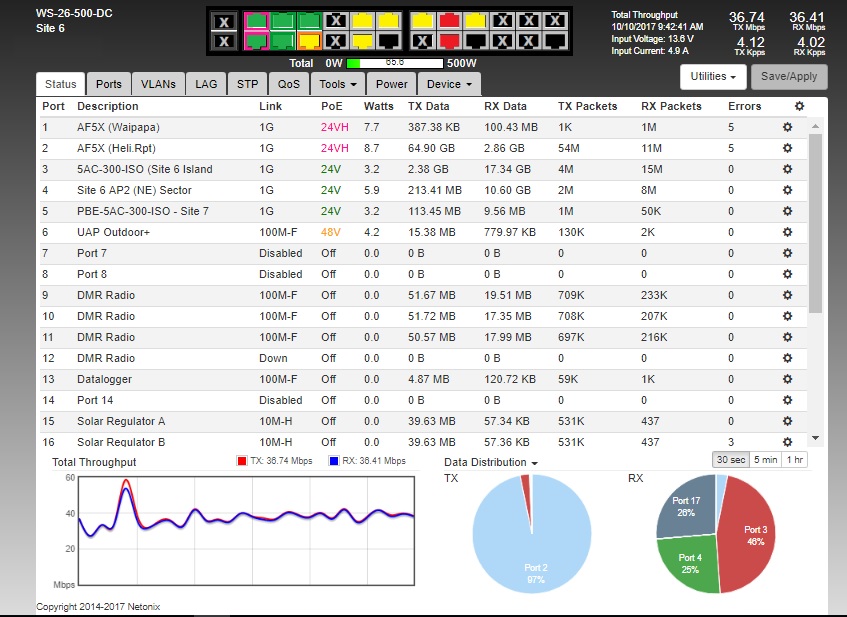During the day the site is charged by solar. There is something like 12 or 1400 Ah of batteries connected in parallel at 12v and there is a generator that runs 12 hours over night every night. The switch runs from a 12v power distribution box which is connected directly to the batteries. It is not a power issues, there is a lot of equipment running out of the same distribution box that does not see this issue. Even the previous switch the WS-12-250-DC did not see this issue running the same firmware. I don't believe we have added any extra POE devices since upgrading the switch, it has only had non POE devices added.