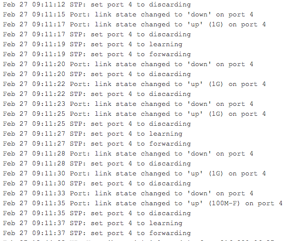 Anyhow, alerts are enabled, test email works, all checkboxes are checked, but this crazy link-flap fest generated zero emails. It did send an email when I ran a cable test. The switch seems to have some thoughts of its own on what a link up/down event is.