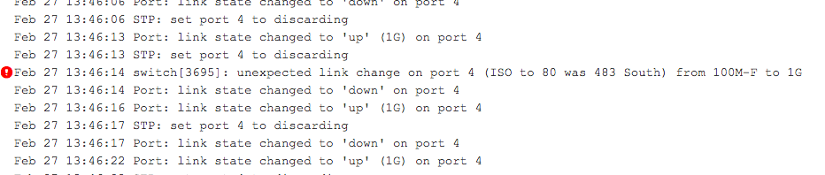 I think it also missed a link speed change - the cable failures started a few days ago and the link hasn't stuck at 1Gb/s since then.