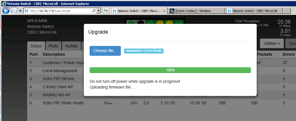 firmware upgrade tftp://192.168.0.19/wispswitch-1.X.X.bin