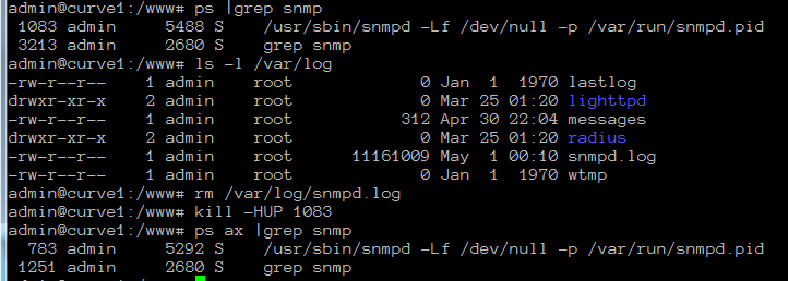 -rw-r--r-- 1 admin root 11028919 Apr 30 13:41 snmpd.log