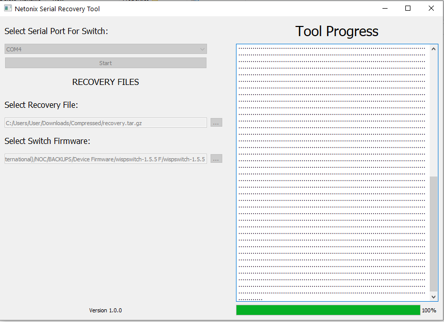 **NOTE**: Make sure that no other program like HyperTerminal or PuTTY is using the Serial port otherwise the Recovery Tool won't be able to access the port.