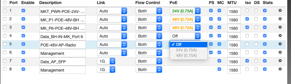 Heck - last picture is current draw form a working site with port 5 powering the Mimosa A5c: