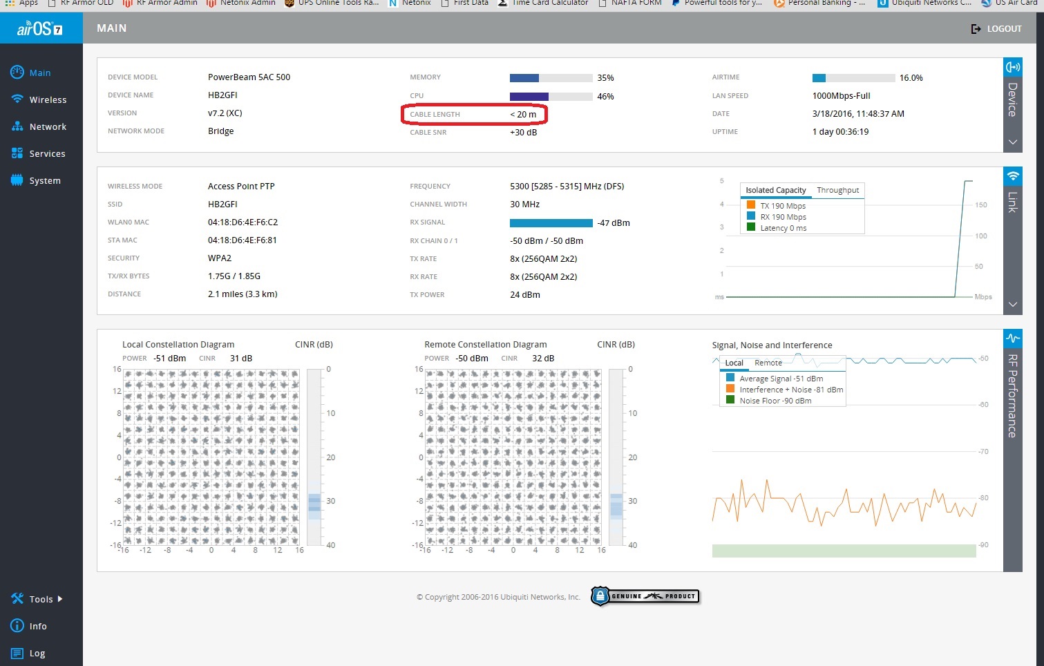 You need to have the programmers fix the reported cable length on the PowerBeam 5AC 500. It reports <20 m when the actual cable length is 200+ feet. Not sure if this affects other AC devices. firmware v7.2(SC) (fear)