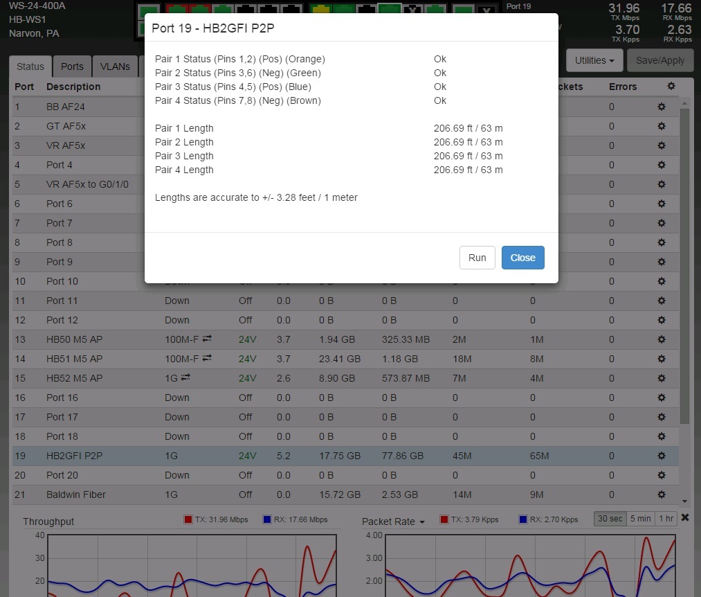 - Everytime we do a reboot or powercycle units (port bounce), the cable length measurement in AF24 WEB UI did not pass and shows "DATA Cable Length: