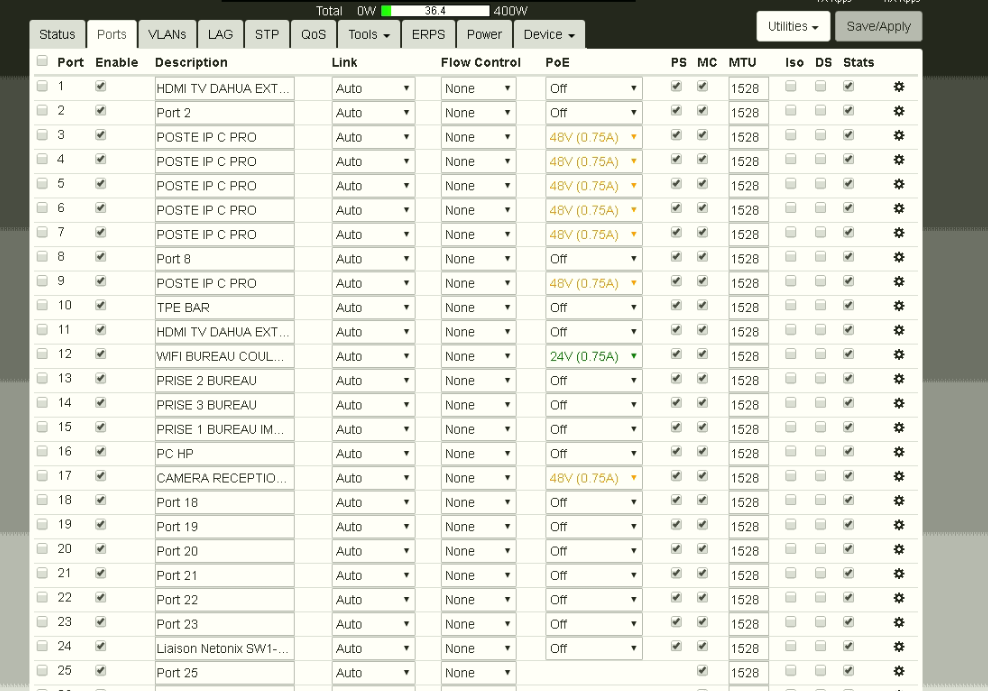 quadra, pour désactiver la journalisation excessive pour un port particulier, décochez la case dans la colonne Statistiques pour ce port.