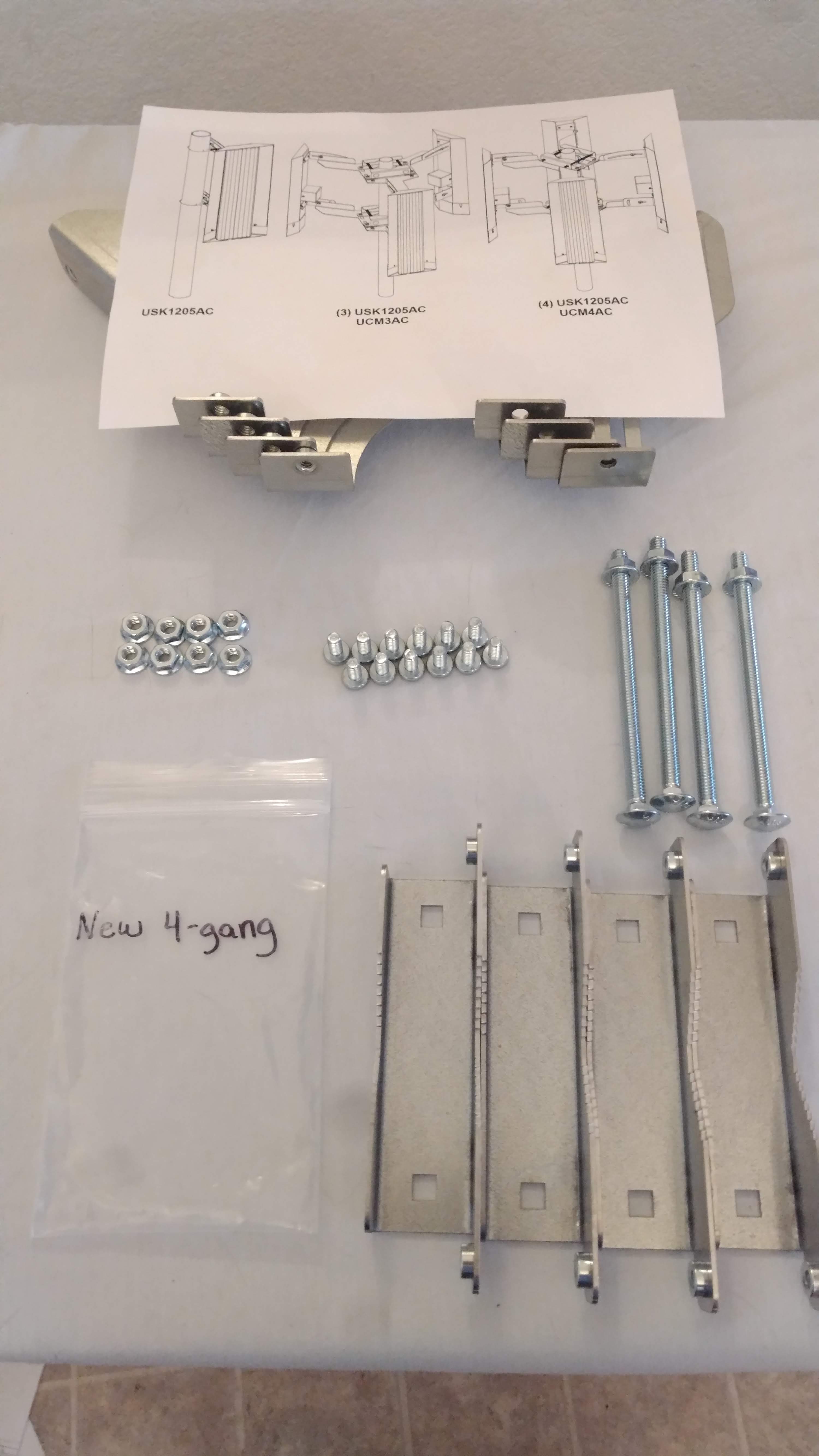 Bag inside the box had "New 4-gang" hand written but it didn't include enough of the 1/4-20 screws (12 in the bag). Curiously it did have 8 nuts which don't have a home and conveniently fit the 1/4-20 screws which would account for the 8 missing screws (damn humans). Couldn't find a way to upload a picture but I've taken one.