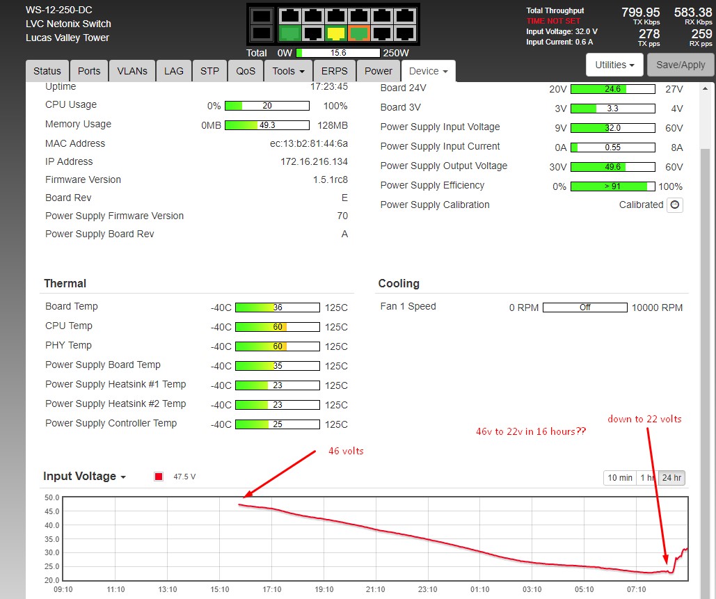 We lost about 24 volts in a span of 16 hours... These batteries are one week old, and only discharged down to 3v each once.