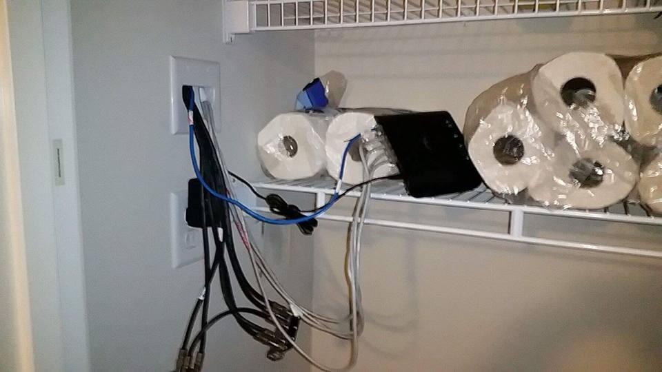 We also moved all the cable TV wiring inside to clean up and secure the closet from the college tenants. The Mini is powered via the homerun with an AF24 PoE brick for now.