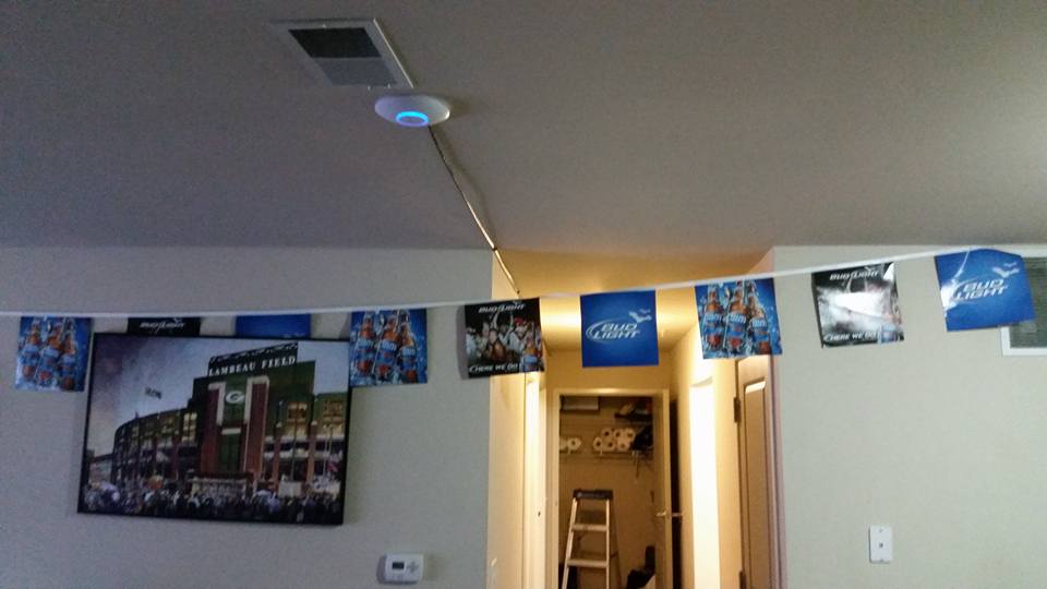 This is the "before". Someone else double sided taped a cheap cisco/linksys router to the wall, those lasted about a year, we quickly/temporary put an AirRouter in each unit, but didn't fix the problem completely due to poor location.