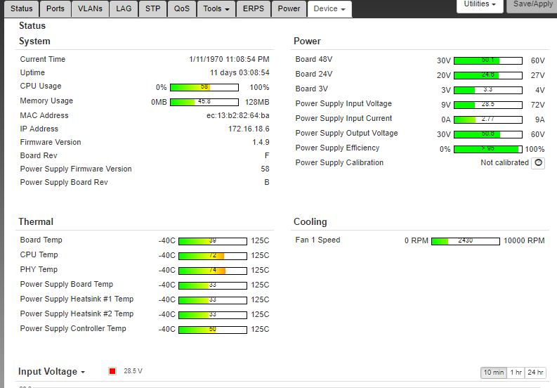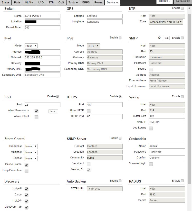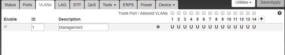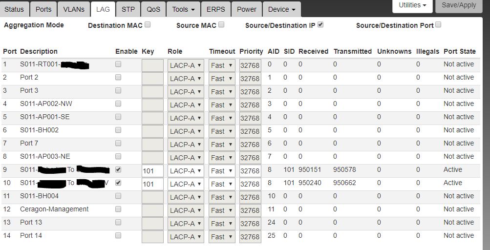 Ports, VLAN, LAG, Device/Config, and Status
