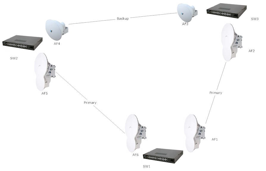 I'm trying to figure out how to make it so my backup link AF4 and AF3 are only passing traffic if the AF5/AF6 link, or the AF1/AF2 link is down.