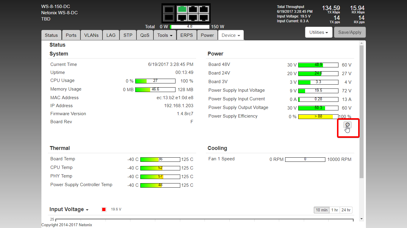 Under Device > Status > Power, there is what looks like a dial that changes the pointer and background on mouseover before it is clicked but not after clicking it. Clicking it does nothing as far as I can tell.