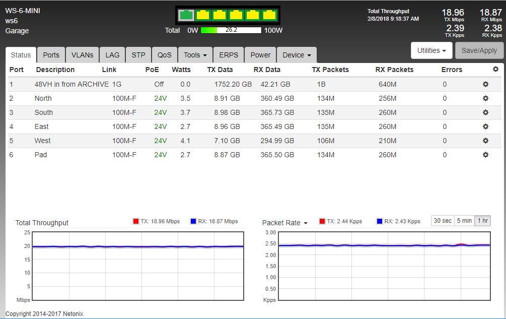 The switch in my screenshots has very stable throughput - dedicated to 5 UBNT G3 cameras. Other switches are also mostly stable throughput and do not match.
