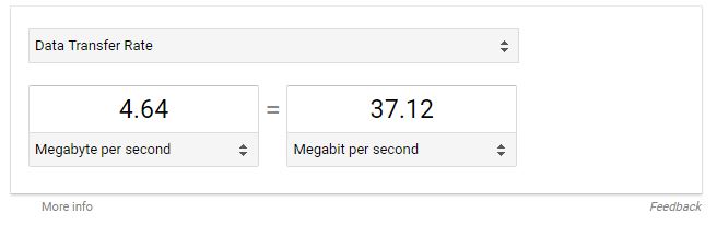 That can only mean it is actually reporting MBps even though it shows Mbps in the interface - which the converted #s bear out.