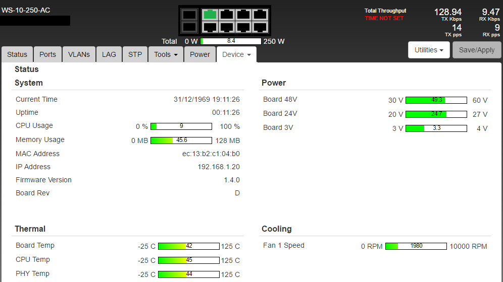 I just plugged it in for first time and its running at 2000rpm without any PoE load, room temp is 24c