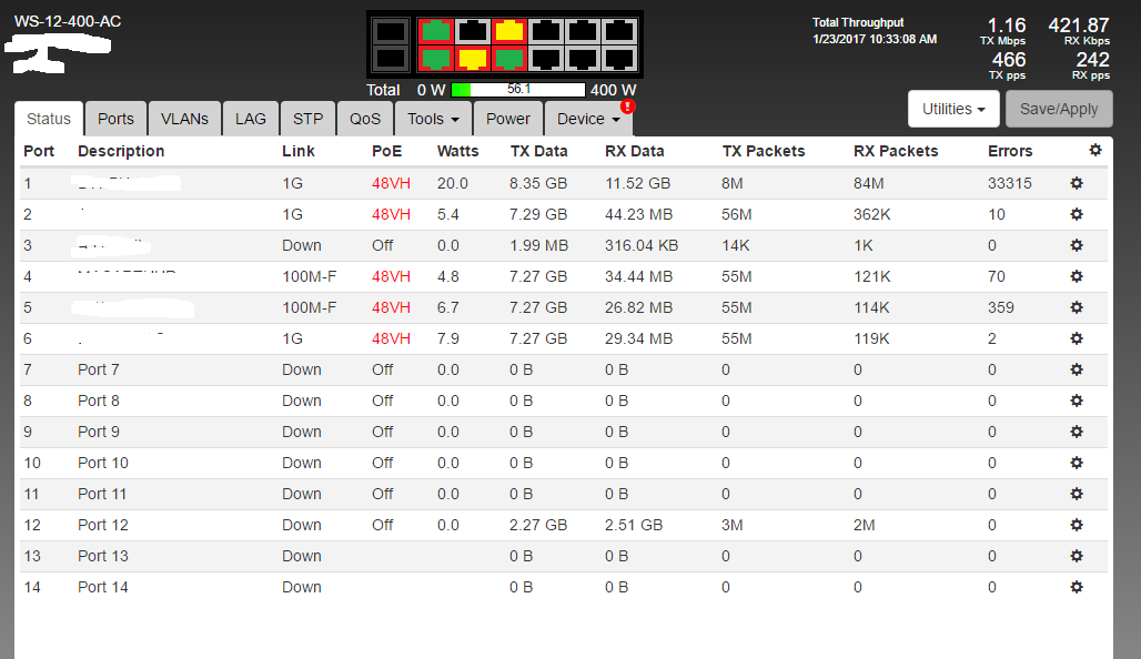 I'm having a strange issue at a new tower site. For some reason I'm getting errors on ports and two devices (both AF-5X) are only linking up at 100 mbps.
