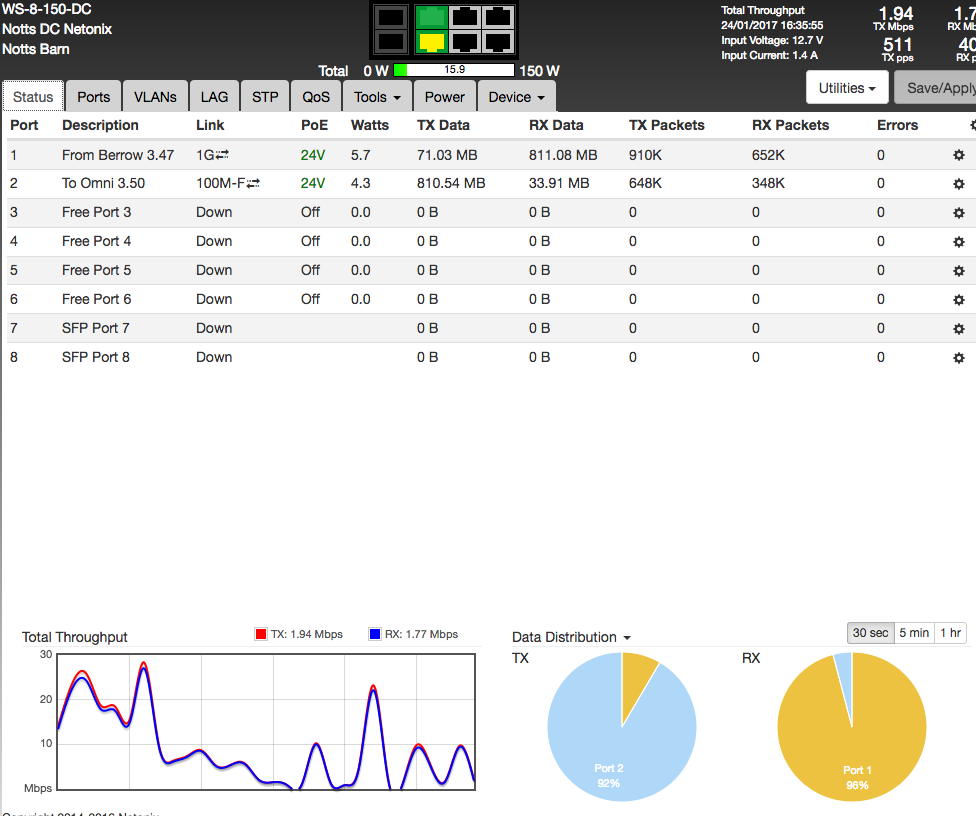When I got up there the box had 12.08v and LEDs on Netonix glowing