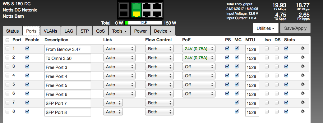 Setup very simple:- Powerbeam M5 400 in a Rocket M2 out (setup v old) and 3 12V Batteries being charged from 2 solar panels.