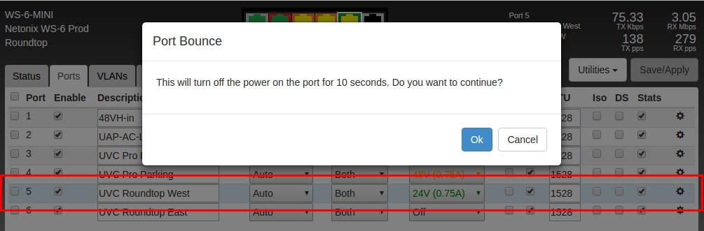 It would be very nice if the port bounce confirmation dialog would not only ask "are you sure you want to bounce THIS port" but instead would also mention its port number and description.