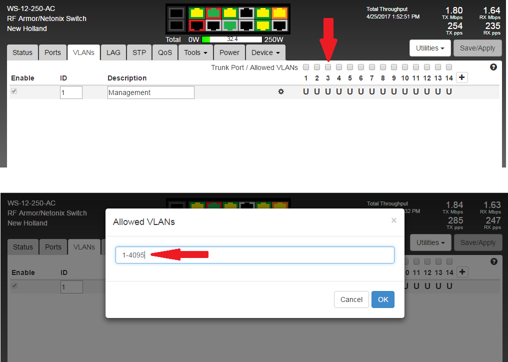 You can then add a list of VLANs you want that matrix entry to allow such as "100-200,212,919,900-1200"