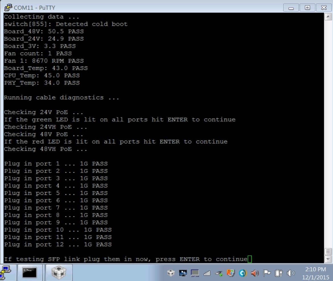 I was wondering what the command would be to run diagnostic? I am using Putty and am serialed in.
