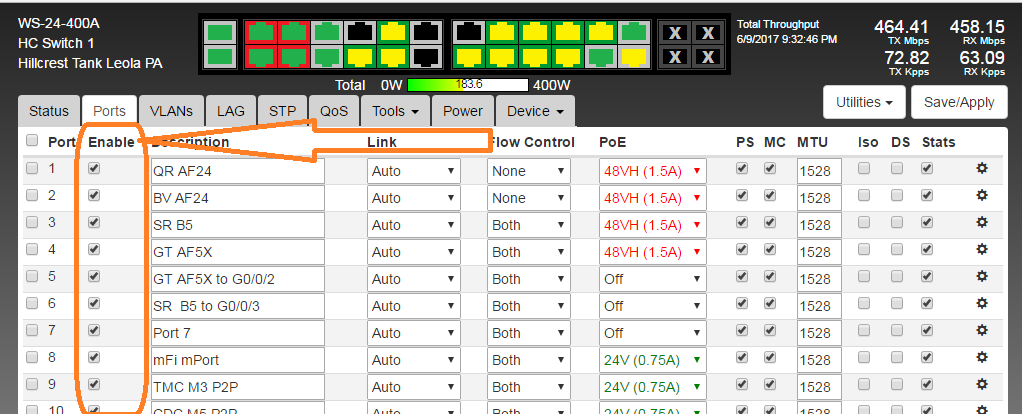 Let's see, say I want to disable an Ethernet port, logic indicates I would do this on the Ports Tab so I click on the Ports Tab