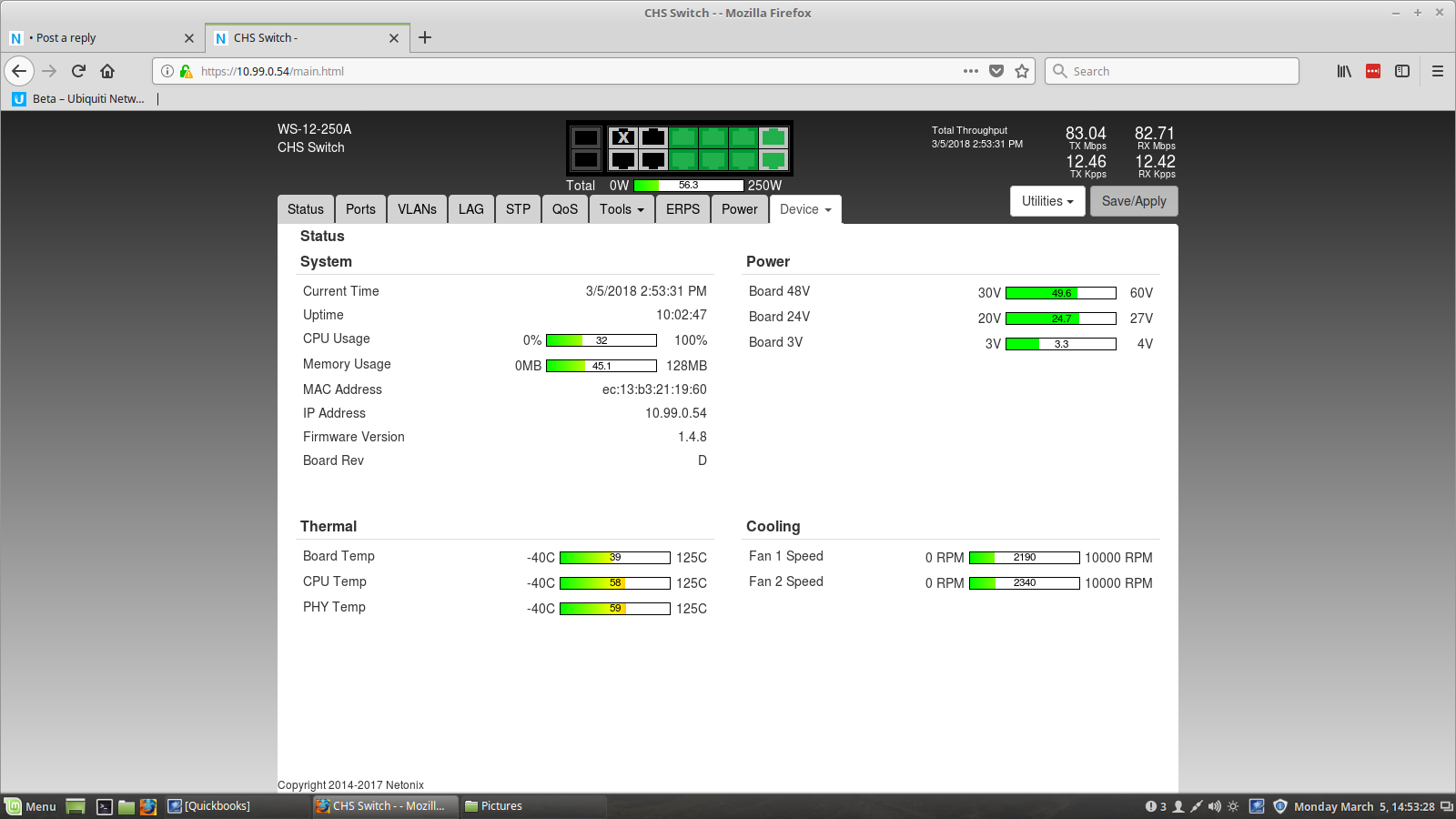 Mar 4 21:23:56 10.99.0.54 Port: link state changed to 'up' (100M-F) on port 5