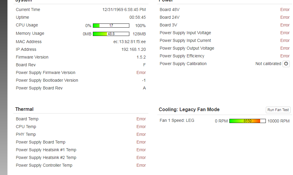 Had a power supply quit on a Rev F switch.