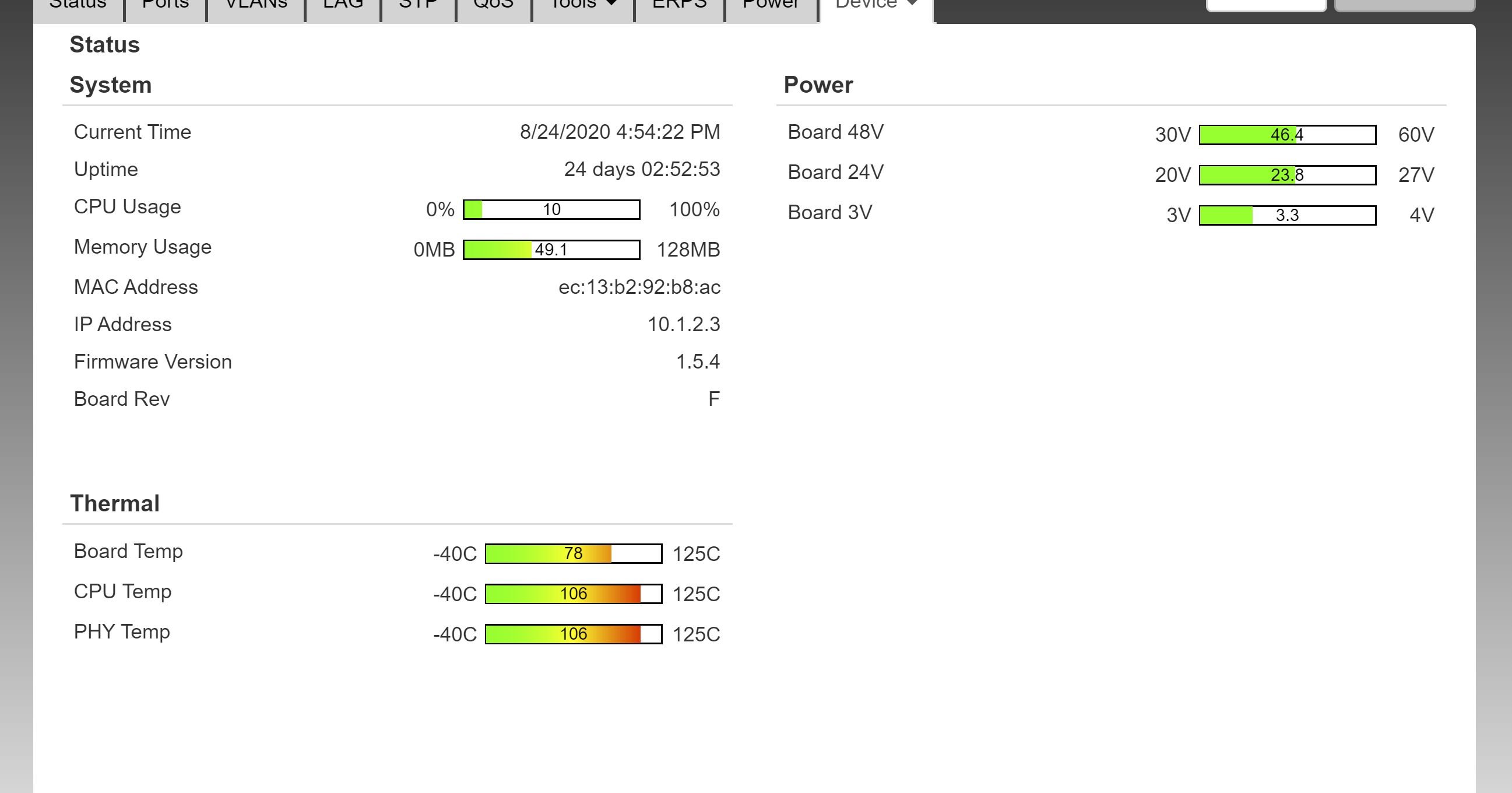 I've got two of these switches mounted on the side of a building. Are vents even going to help?? Bare in mind, these have both cooled down about 8C since I got around to taking screenshots. What happens when they get to 125C ?? I'm afraid to light up the other two ports on these units...currently each are only using 3 POE out