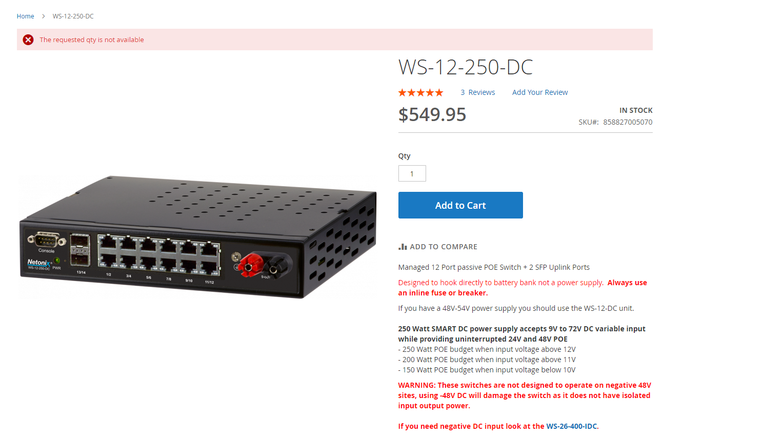 Hi, is the WS-12-250-DC available or not? Says it's in stock but no matter what quantity I put in it won't add to the shopping cart as the requested quantity isn't available.