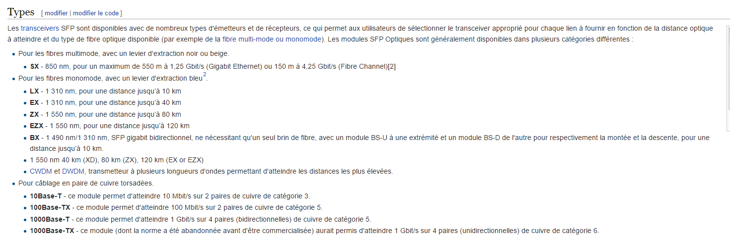 Jusqu’à quel débit peut ton avoir avec ce port SFP en fibre optique ? Quelle distance max ?
