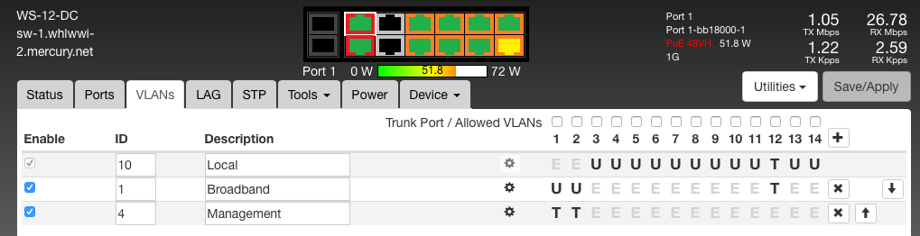 In my configuration, my Management VLAN is 10 (top VLAN on VLANs tab). Is that causing Netonix not to send out RSTP on VLAN 1 (second VLAN on VLANs tab)? If so, can that be fixed? RSTP BPDUs are supposed to be on VLAN 1 and it seems like they are not for me.