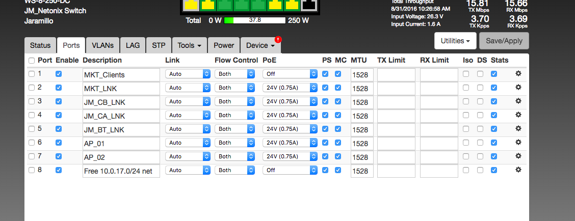 Aug 31 10:16:57 switch[1368]: Port 3: PoE is enabled and port has link, power should not be 0
