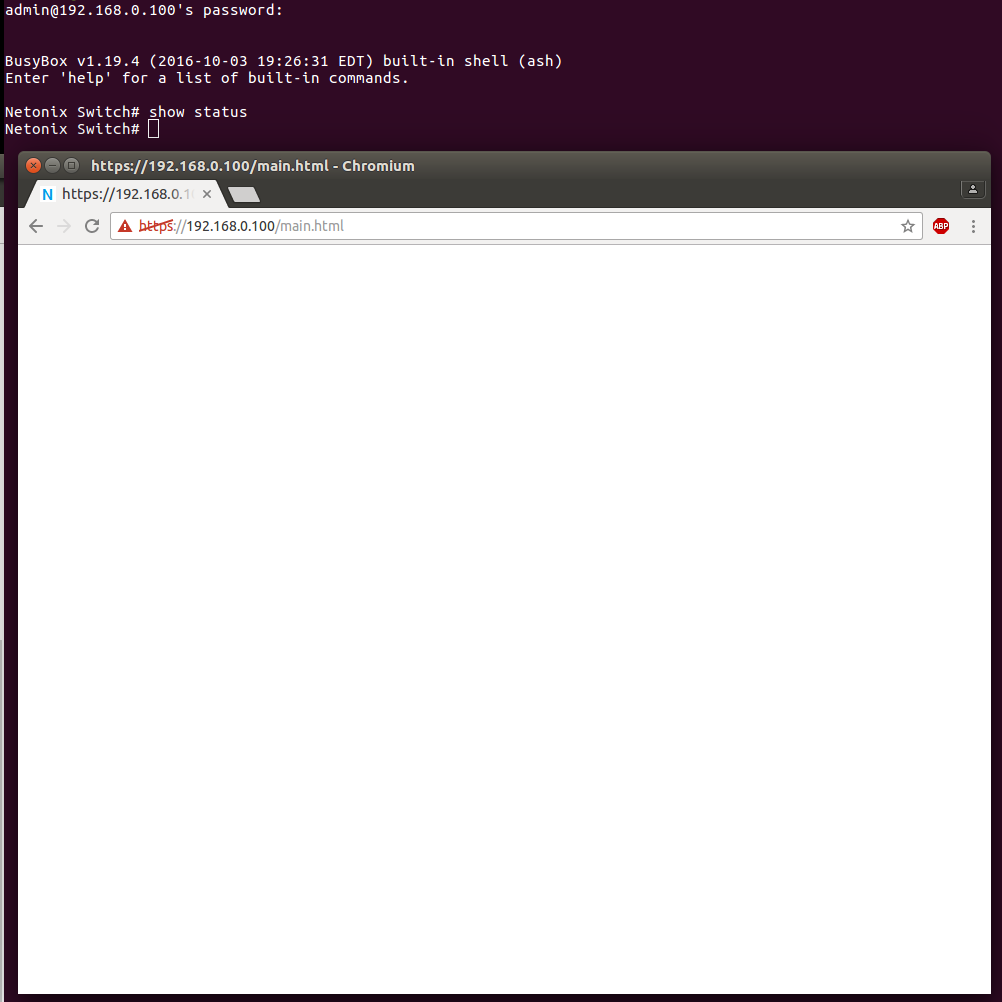 New user to the forums and of the hardware. I have a New WS-6 Mini switch. I am unable to access the web gui. When I launch my browser and go to the switch's IP address, I am presented with the Netronix logo and the username/password fields. I login with the default username and password and then am presented with nothing but a white screen. I am able to SSH into the switch and issue commands. I have upgraded the firmware to wispswitch-1.4.5rc8.bin. I've used the microswitch to apply factory defaults both before and after the firmware upgrade. Still just a white screen. I've tried on Windows, IE, Chrome, Firefox, and on Linux, Chrome and firefox. Same results.