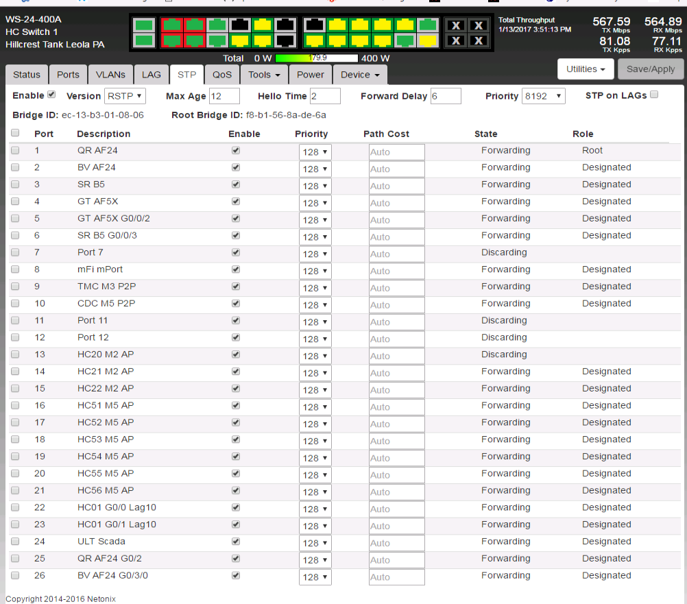 However in my offices I have 2 or more WISP Switches hooked together and I have no flapping ports in any of my offices???
