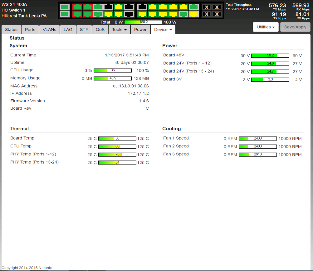 At RF Armor / Netonix we have a WS-12-250-AC and several other switches we use to test firmware and serve the office and no flapping ports?