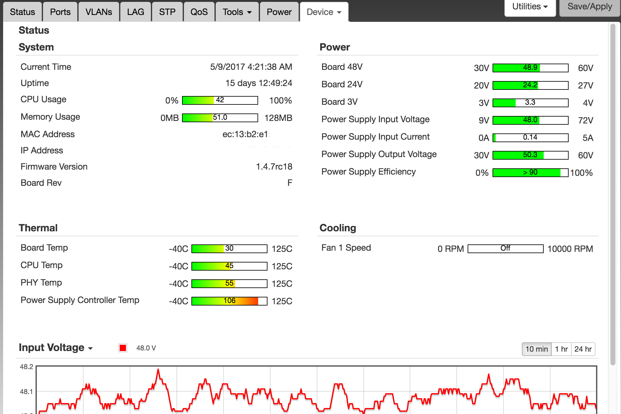 In the status tab the device display a Power supply controller temp of 108°C but if i test with my hand (isn´t a termometer) in the board nothing is in this range of temperature.