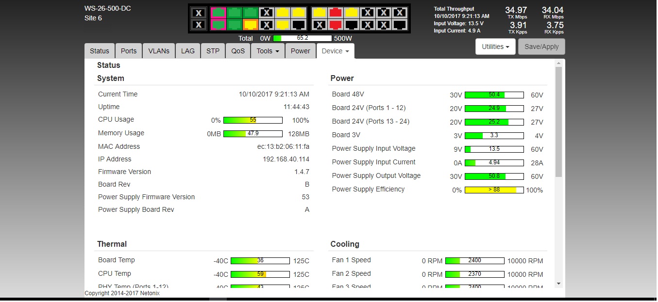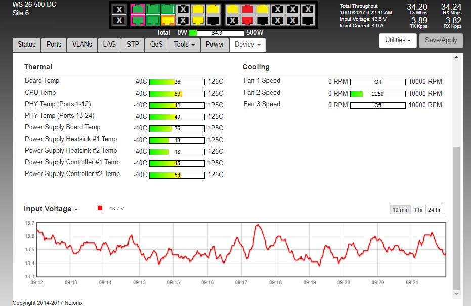 I agree that it would be better at 24v how ever there is equipment on this site that requires 12v. Yes I could step up the voltage but your switch can handle 9-72v I shouldn't need to run extra voltage equipment. As I keep saying the 12 port switch was perfectly fine. I have management of 50+ netonix switches on both 12v and 24v systems yet this is the only switch I am having problems with. I believe it all points to this particular switch. Now I do not know if it is hardware or software issue hence I am posting here.
