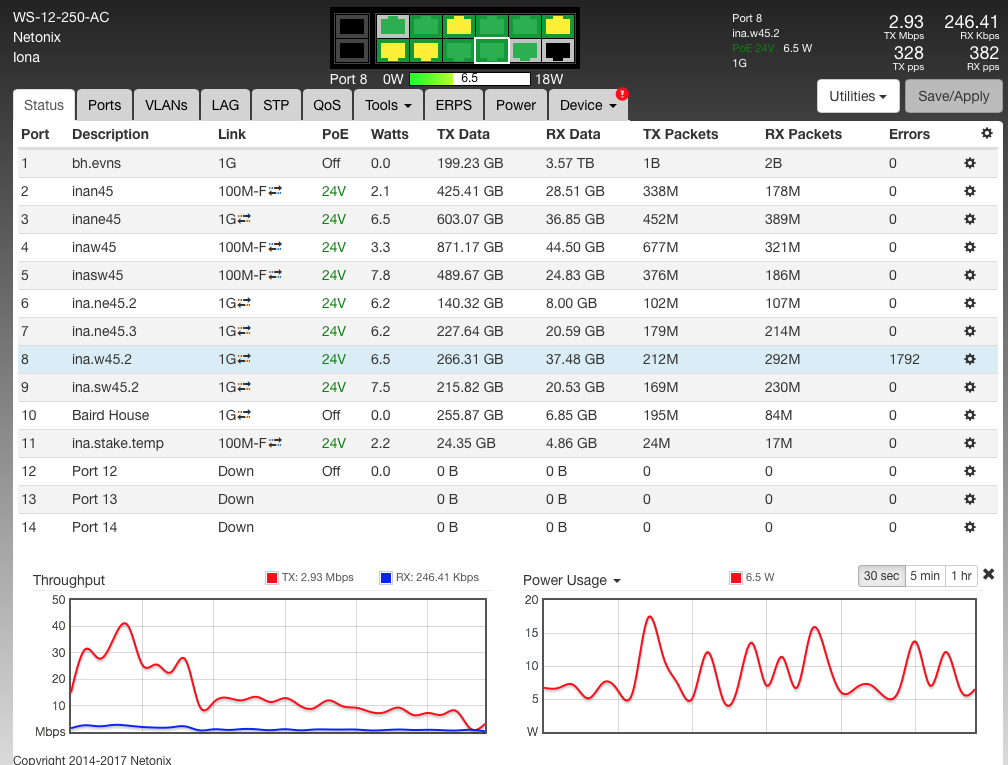 Status - have the power graph selected on the bottom showing power consumption on the port your talking about.