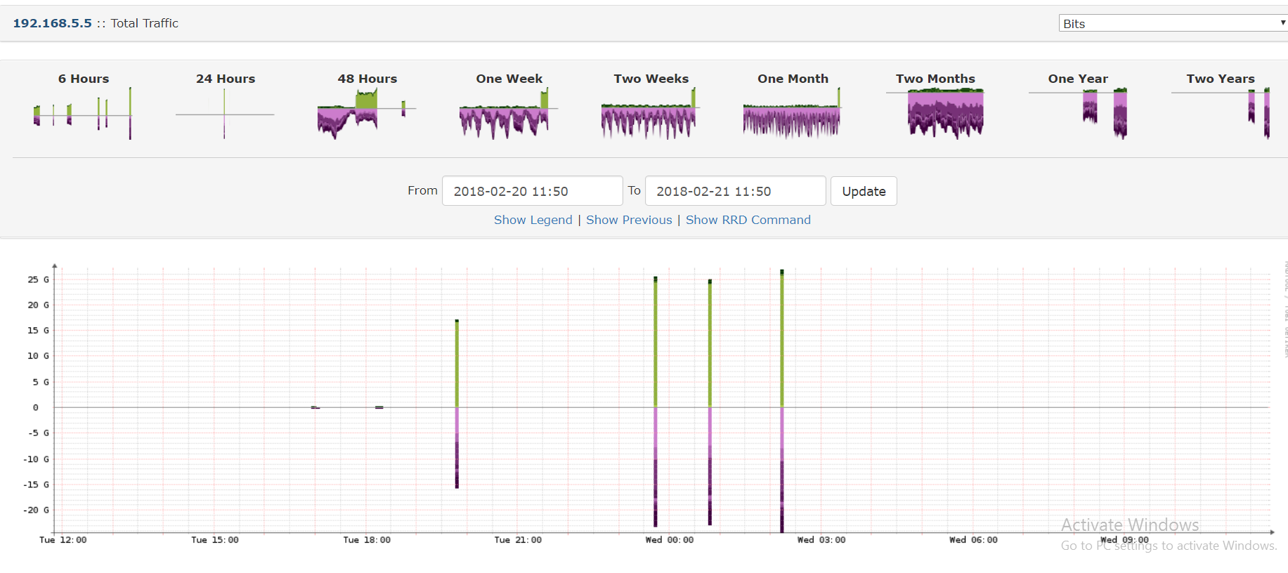 As I said how the graphs work is they look at the port statistics every second and compare to the previous second readings to see how much data passed through a port in that 1 seconds. That telemetry is then stored in a simple multi-dimensional array and dumped into an off the shelf graph module used by hundreds of manufacturers including UBNT to generate the graphs.
