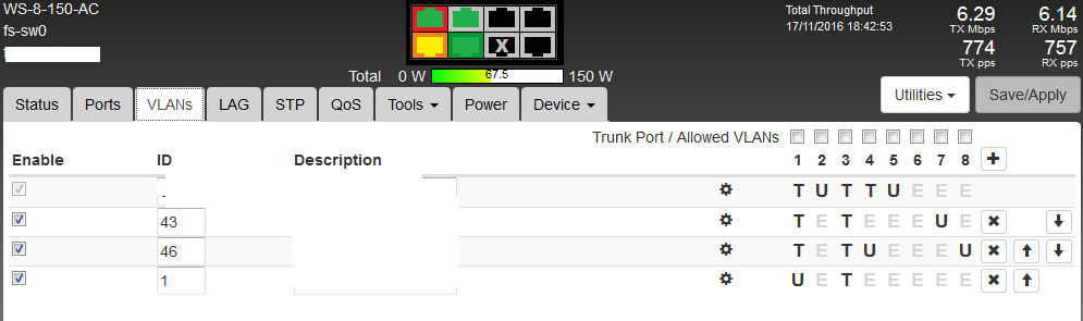 However.... while our mini-6 see's the mac of our router in multiple vlans happily, it never gets to the 8 port one which only see's one of the mac's (the one local to it rather than coming in tagged on the uplink port)