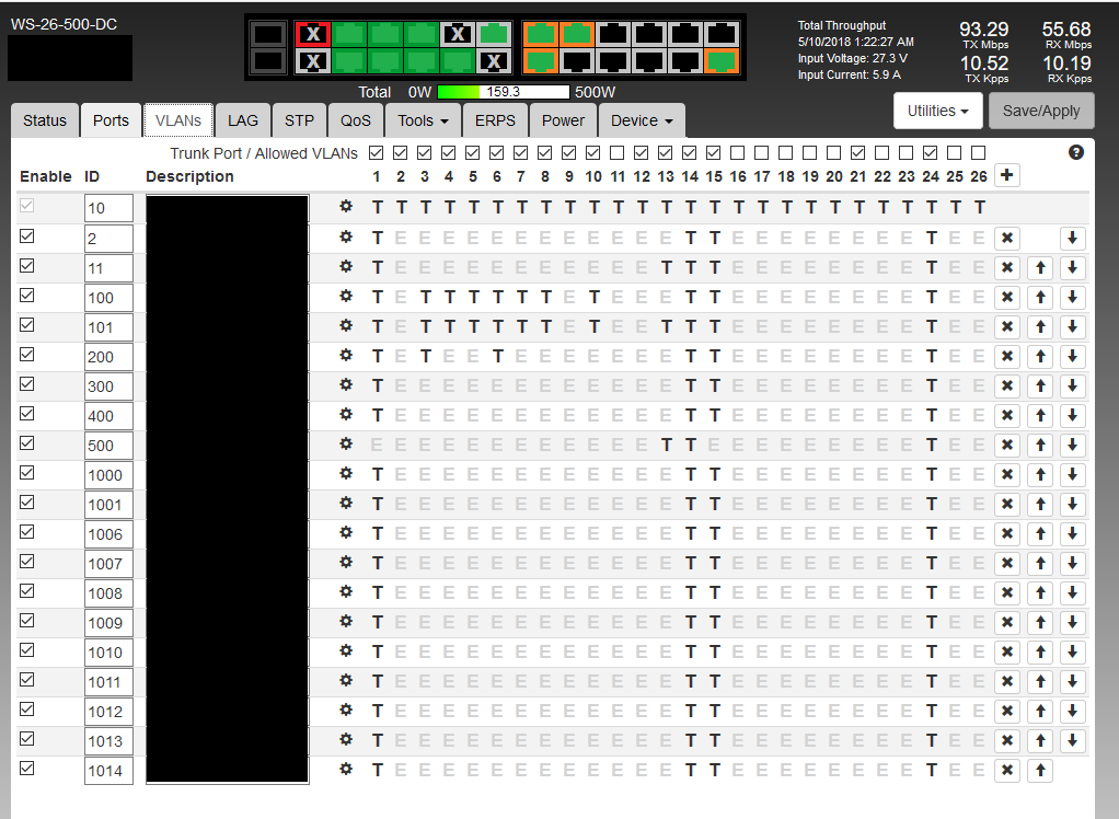 We have a WS-26-500-DC running 1.5.0rc4 and have many vlans passing through 2 separate uplinks.
