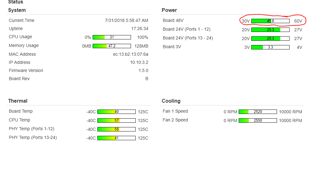 Under the tab DEVICE-> STATUS->BOARD 48v is the current power input from the source? or how do I know whats the current voltage at the moment from the battery bank?