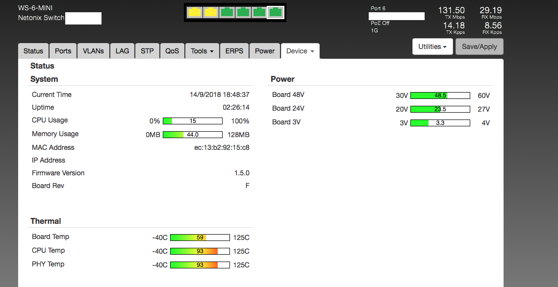 Can you post up these TABS: Status, Ports, Device/Status (see my post footer on how to properly upload pictures)