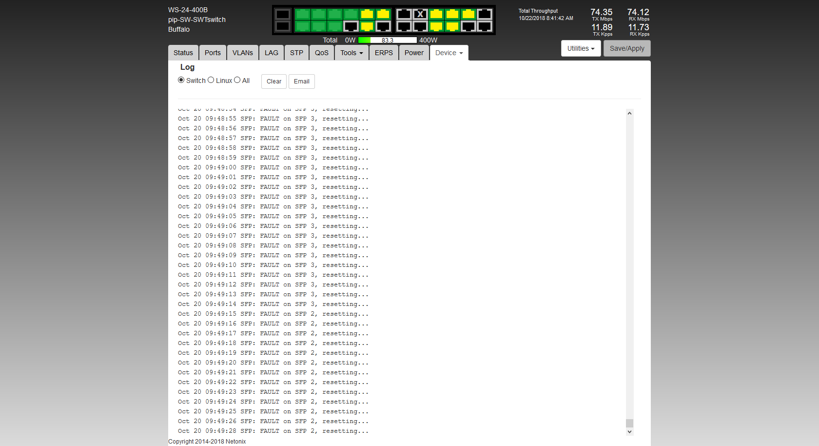 Re: Oct 15 04:58:53 SFP: FAULT on SFP 3, resetting...